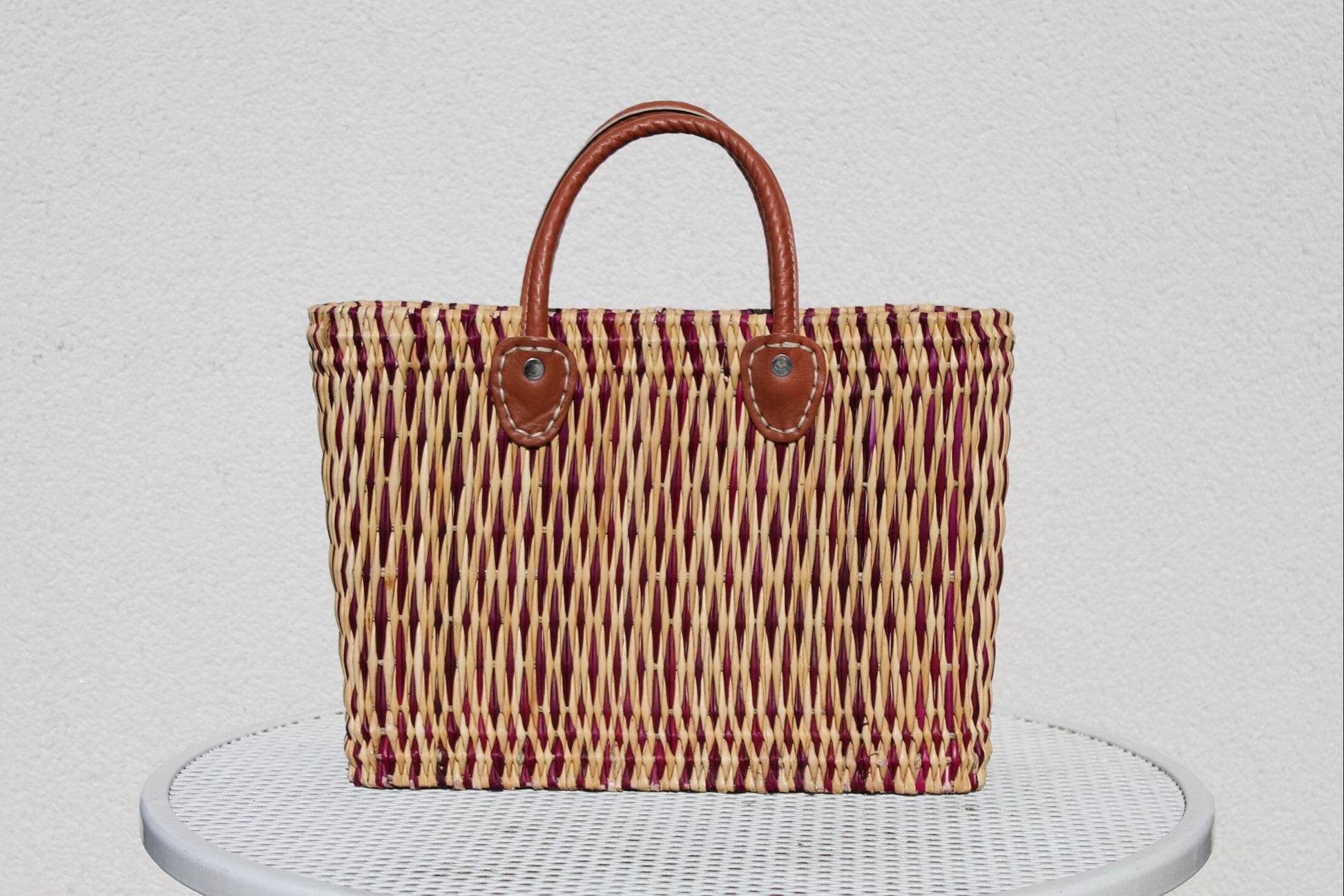 Traditionally made in Morocco, this straw bag featuring elegant fuschia accents is perfect for your summertime adventures. From outdoor picnics to beach trips, these sturdy totes (measuring 37 cm x 27cm) can hold all your summer essentials.